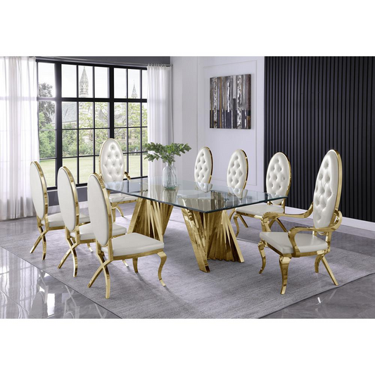 Classic 94" Gold Glass Dining Table with Spiral Base