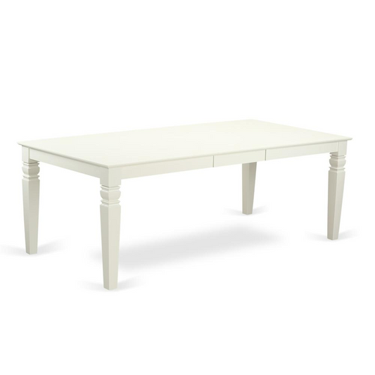East-West Furniture LGSI7-LWH-15 - A dining room table set of 6 great dining chairs with Linen Fabric Baby Blue color and a wonderful 18 butterfly leaf rectangle dining room table with Linen White co"