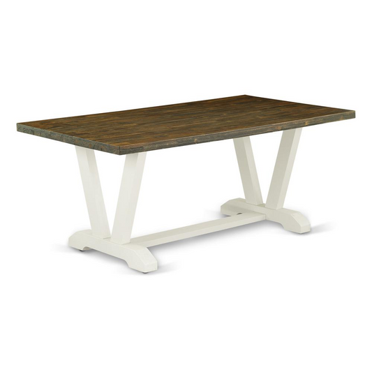 East West Furniture X077BA201-7 7-Pc Dinette Set - 6 Mid Century Dining Chairs and 1 Modern Rectangular Distressed Jacobean Wooden Dining Table Top with High Chair Back - Linen White Finish