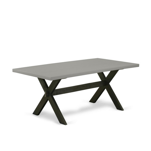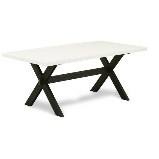 East West Furniture X627DR124-6 6-Pc Modern Dining Set- 4 Parson Dining Room Chairs with Black Linen Fabric Seat and Stylish Chair Back - Rectangular Top & Wooden Cross Legs Mid Century Dining Table a