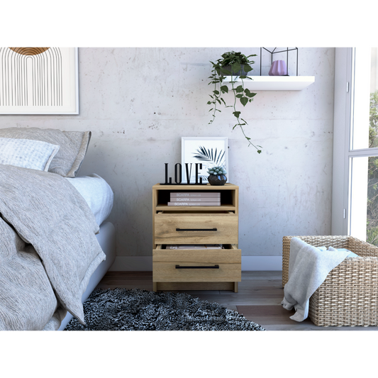 Nightstand Cartiz, Two Drawers, Light Oak Finish