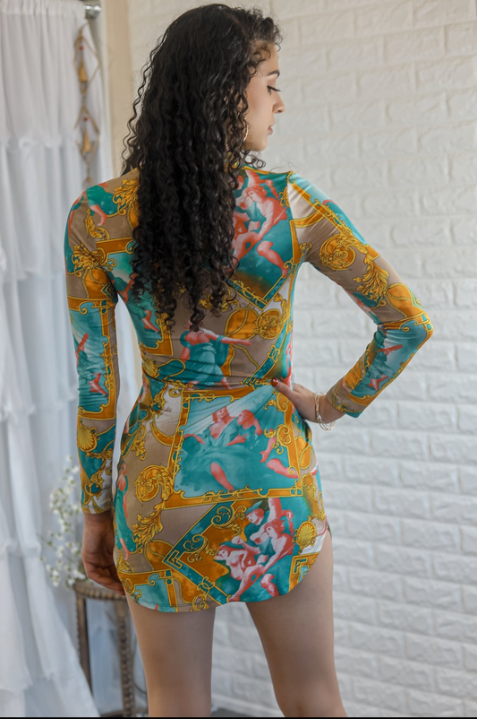 Retro Graffiti Print Elastic Long Sleeve T-Shirt
