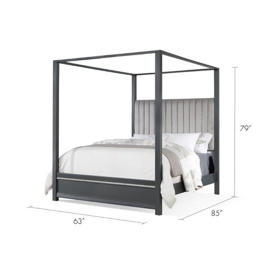Abrie Tall Canopy Velvet Channeled 5pc Queen Bedroom Set