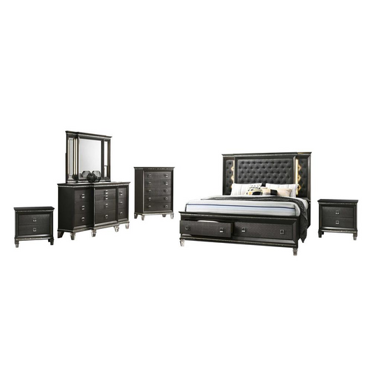 5 PC Set : 1 Bed, 1 Vanity Set, 2 Nightstands, and 1 Chest