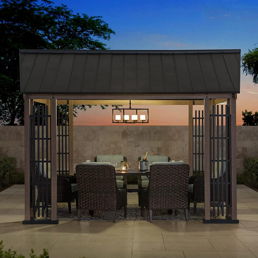 Wood Gazebo, Outdoor Patio Aluminum Hardtop Gazebo, Cedar Framed Wooden Gazebo