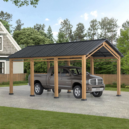 Cedar Wood Frame Carport Outdoor Patio Hardtop Gazebo