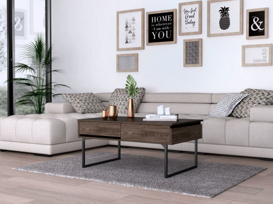 Osaka Lift Top Coffee Table, Two Legs, Two Shelves
