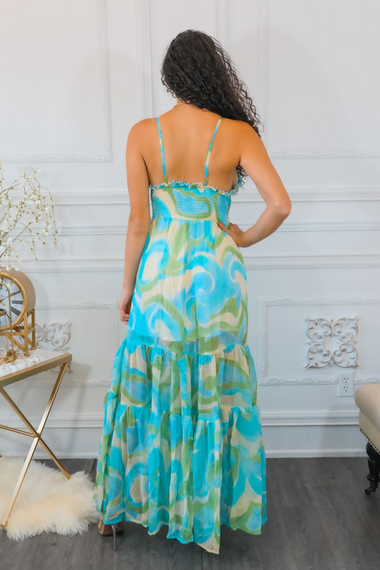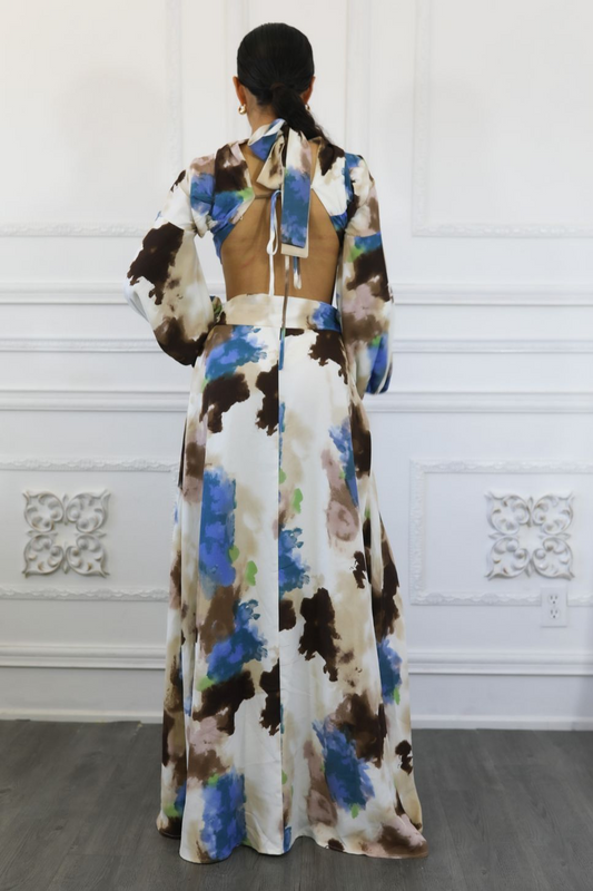 Paint Me Bubble Sleeves Cut Out Maxi Dress