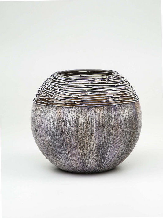 Art Decorated Gray Glass Vase for Flowers | Painted Art Glass Round Vase | Interior Design Home Room Decor | Table vase 6 inch