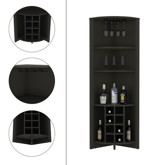 Giza Corner Bar Cabinet, Three Shelves, Eight Wine Cubbies, Two Side Shelves