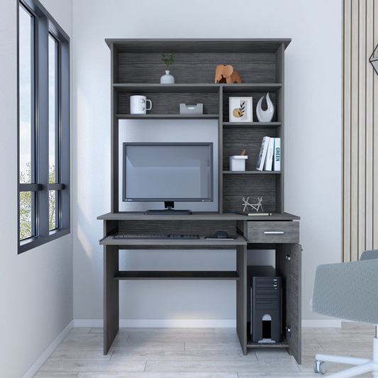 Computer Desk Acequia, Multiple Shelves, Smokey Oak Finish