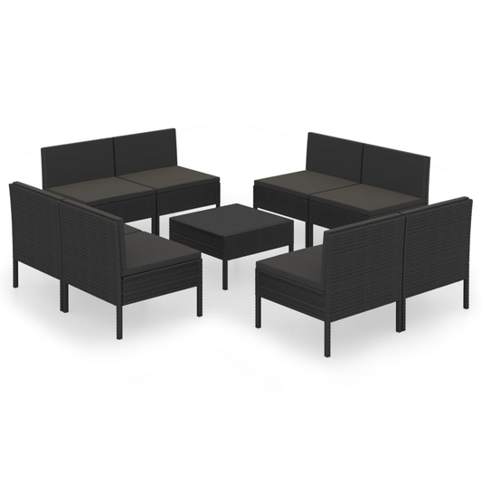 vidaXL 9 Piece Patio Lounge Set with Cushions Poly Rattan Black