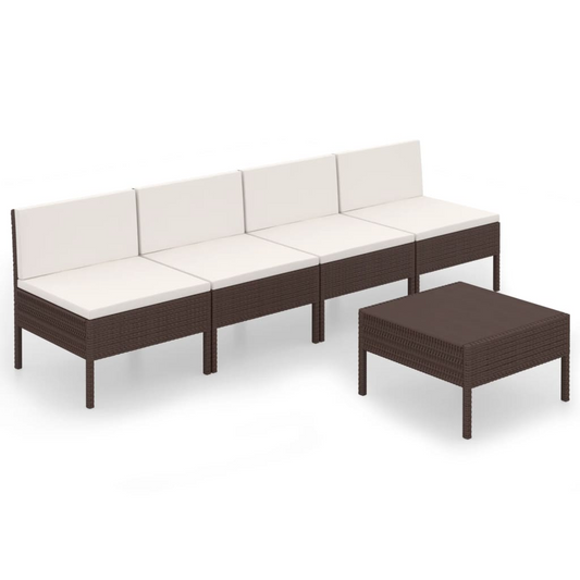 vidaXL 5 Piece Patio Lounge Set with Cushions Poly Rattan Brown