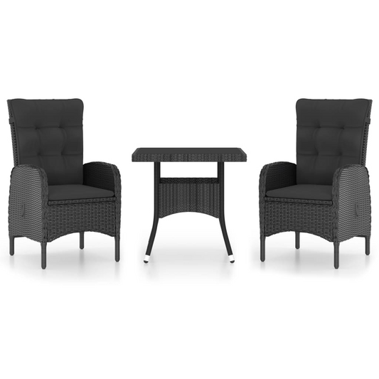 vidaXL 3 Piece Patio Dining Set Poly Rattan and Glass Black