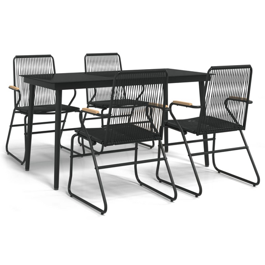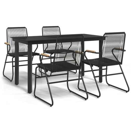 vidaXL 5 Piece Patio Dining Set Black PVC Rattan