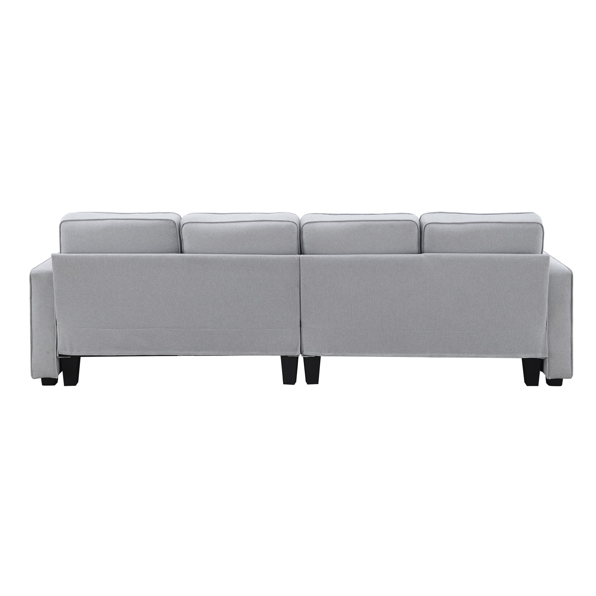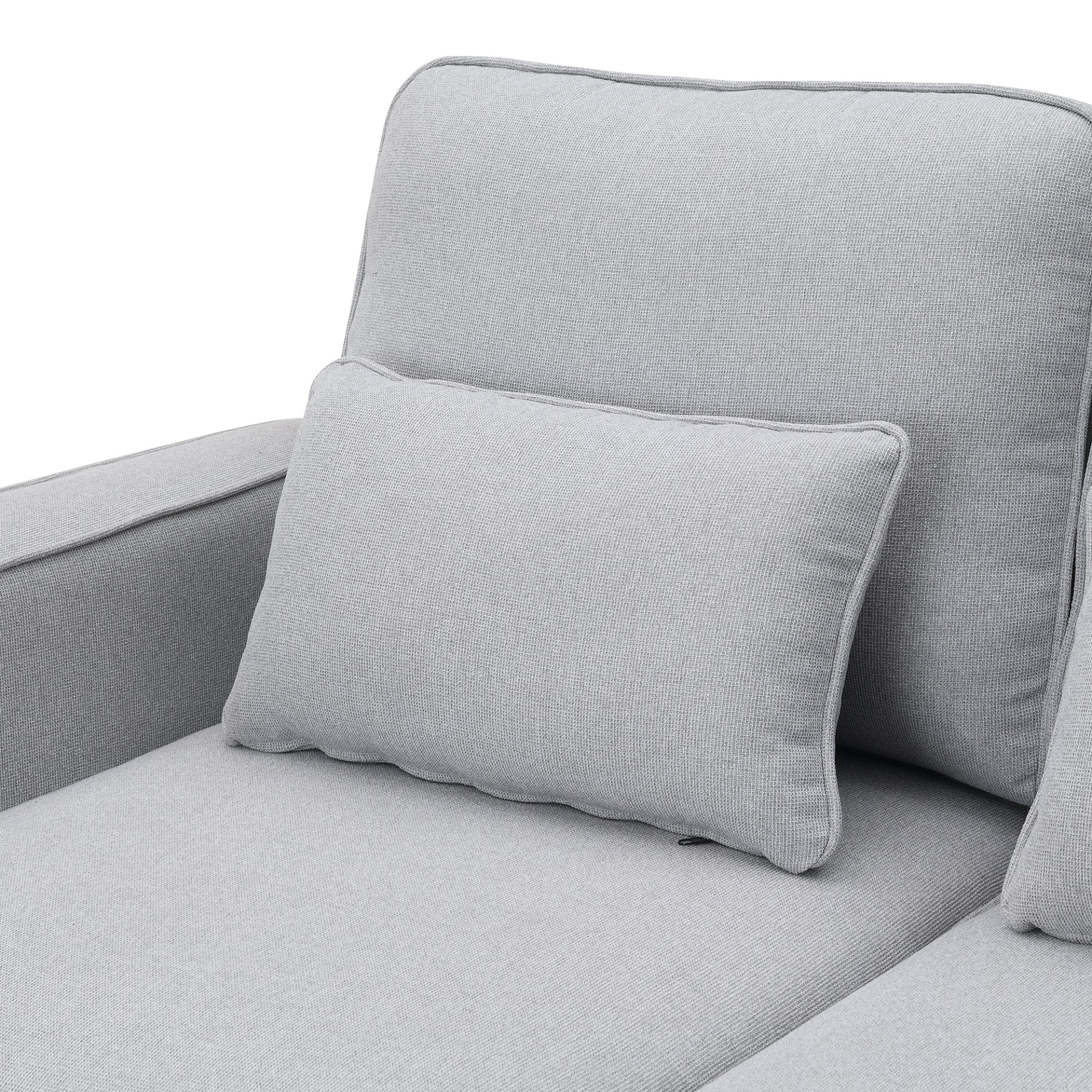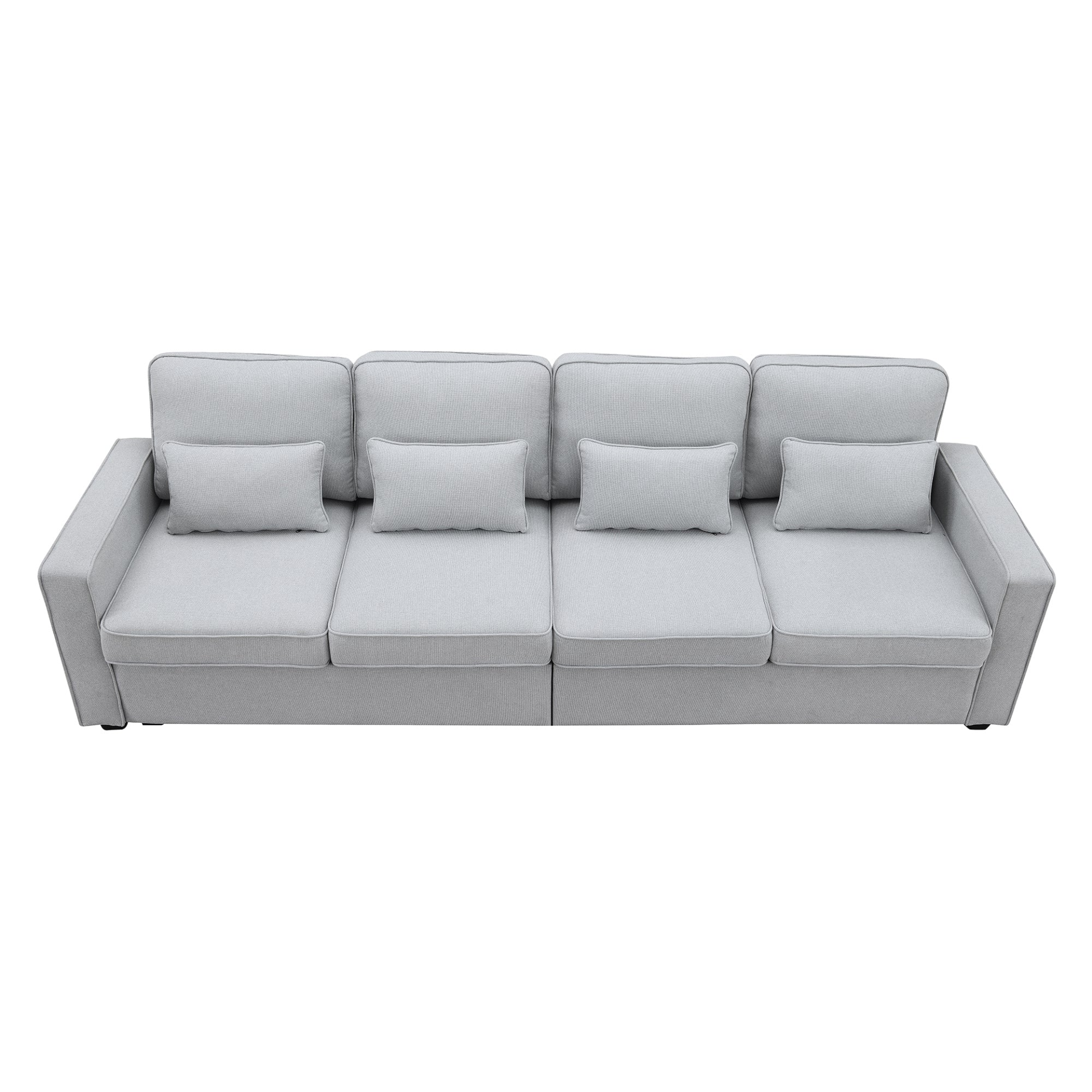 Modern Linen Fabric Sofa with Armrest Pockets and 4 Pillows