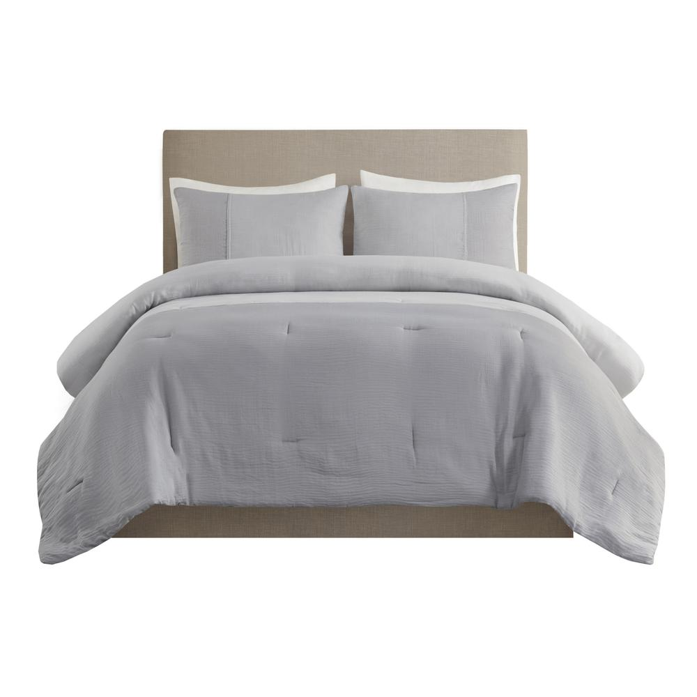 3 Piece Gauze Oversized Comforter Set, King/Cal King, Gray