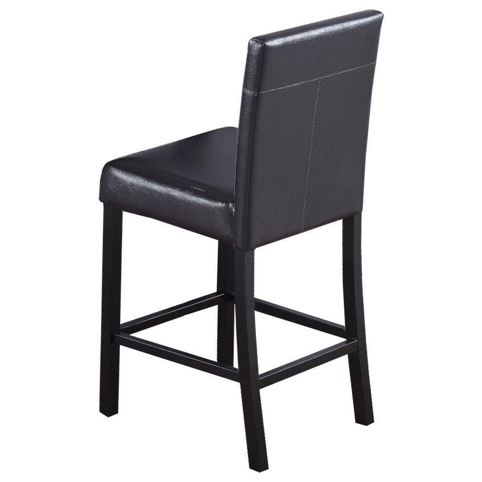 Update your dining room with these simple, yet sleek comtemporary side chairs. The side chairs are upholstered in espresso faux leather and are easy to clean with a wet rag. It's as comfortable as it is stylish.
