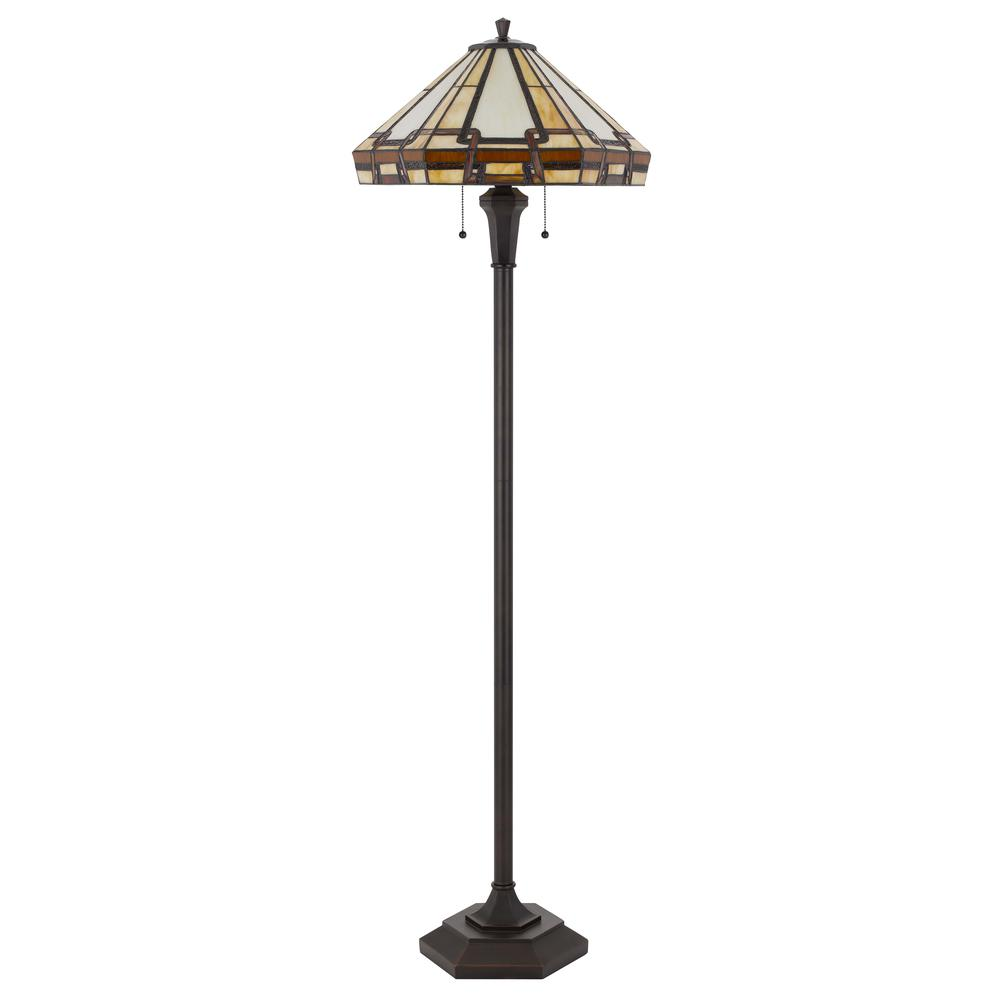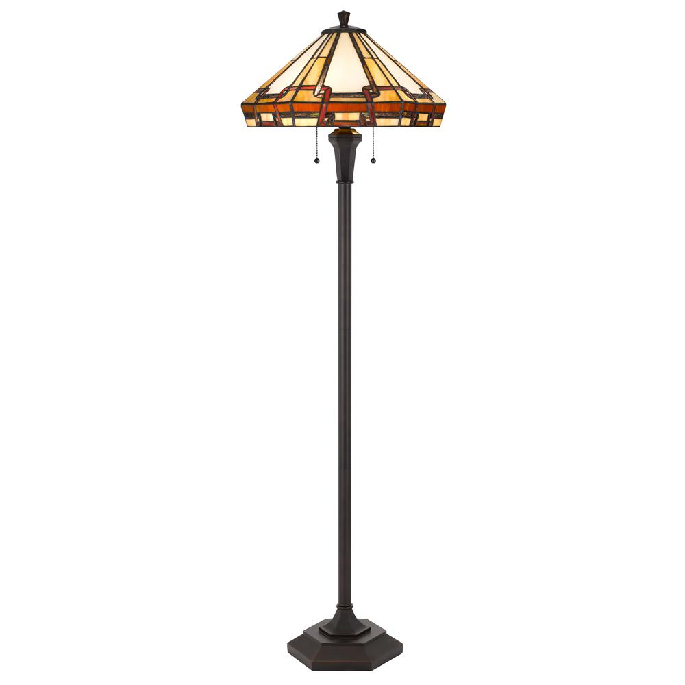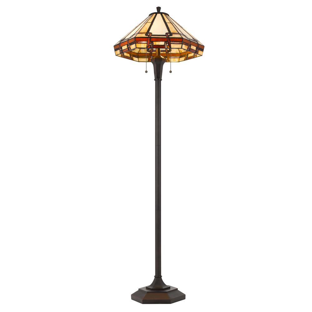Add a touch of color to your décor with this this Art color glass tiffany lamp. It features a stained glass mission style design with slim dark bronze column frame. The lamp has a faceted weighted base and a double pull chain with ball tips for easy acces