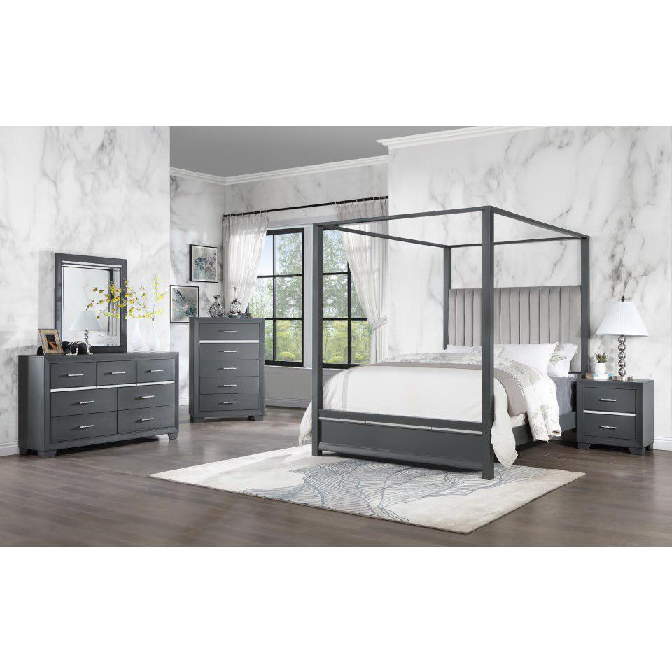 Abrie Tall Canopy Velvet Channeled 5pc Queen Bedroom Set