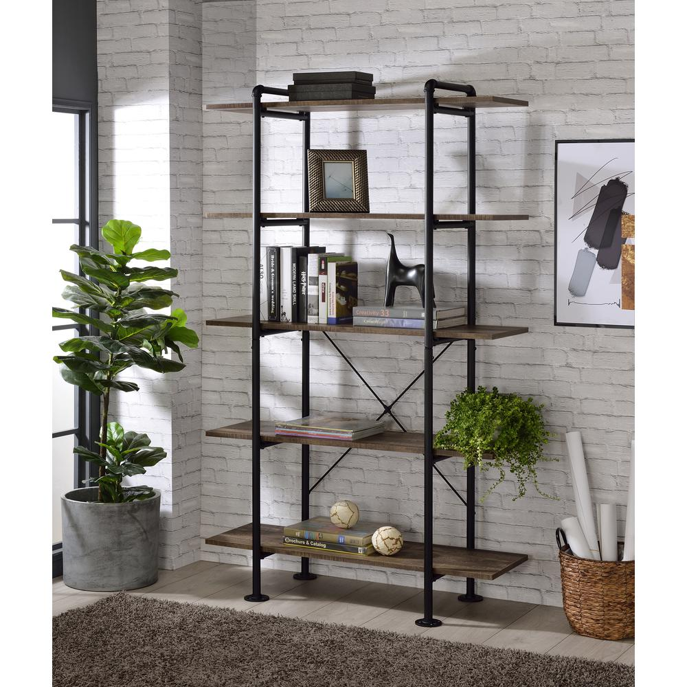 ACME Nefo Bookcase, Rustic Oak & Black Finish
