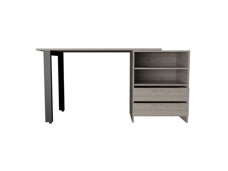 The Austral 120 writing desk is a classic, modern, and compact piece that will have your back regarding today's needs for remote learning or working from home. Standing 28.8" inches high, this desk is perfect, functional, and compact. It features two spacious drawers (18,18''W X 3,93''H) to store all your items and keep your space clean and neat. It also includes two open shelves (5,94''H X 20,39''W). The spacious tabletop allows you to work comfortably on your monitor or laptop, and the final touch with two stylish legs. Designed with elegant light grey manufactured wood finish.