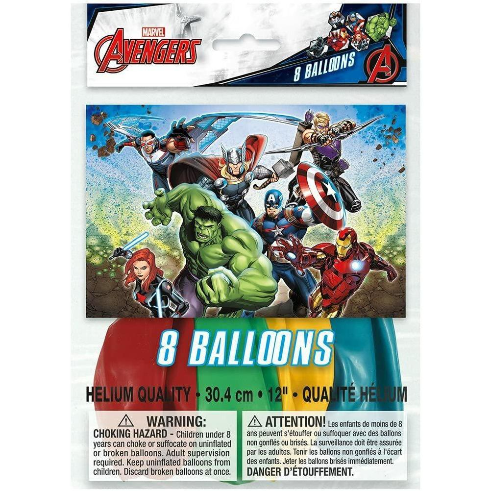 - Elevate your Avengers-themed celebration with our 8 Latex Avengers Balloons! These 12-inch biodegradable balloons add a burst of color and excitement to any kid's birthday party. Please note that the packaged balloons may vary in color or shade from the inflated ones, ensuring a delightful surprise. Easy to inflate and perfect for creating a festive atmosphere, these balloons are a must-have addition to your Avengers party. For an epic celebration, combine them with other Avengers party supplies from Unique. Make your event a superhero success with these vibrant and fun latex balloons