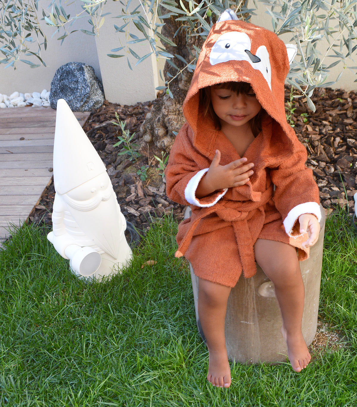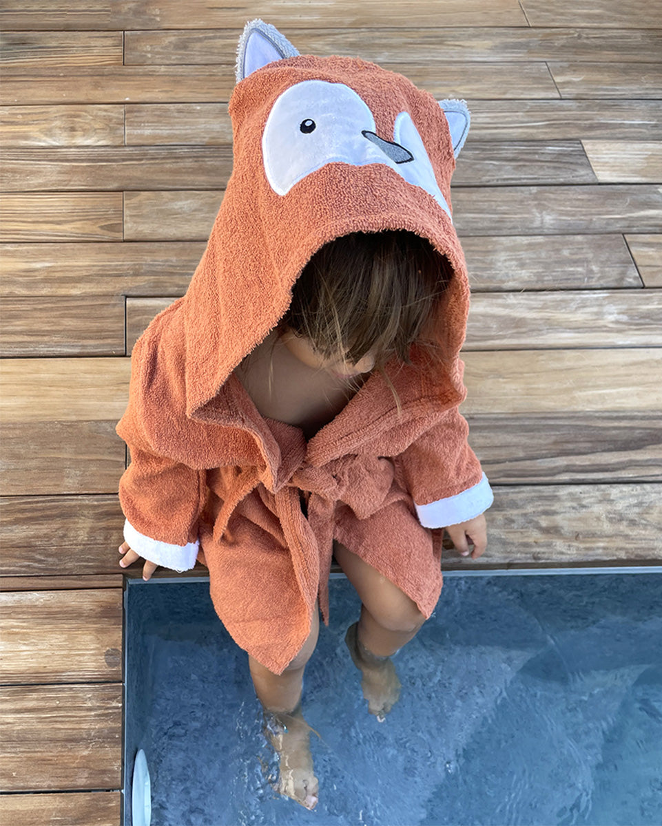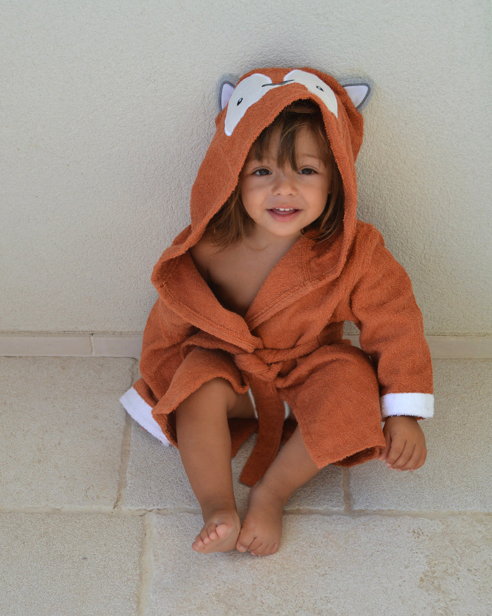 Super soft bathrobe in pure cotton! Made with delightful 3D details, it allows the child to perfectly dry off and transform into an adorable fox by putting on the hood. This bathrobe also includes a built-in belt. Available in 3 sizes. Suitable for children from 6 months to 5 years.