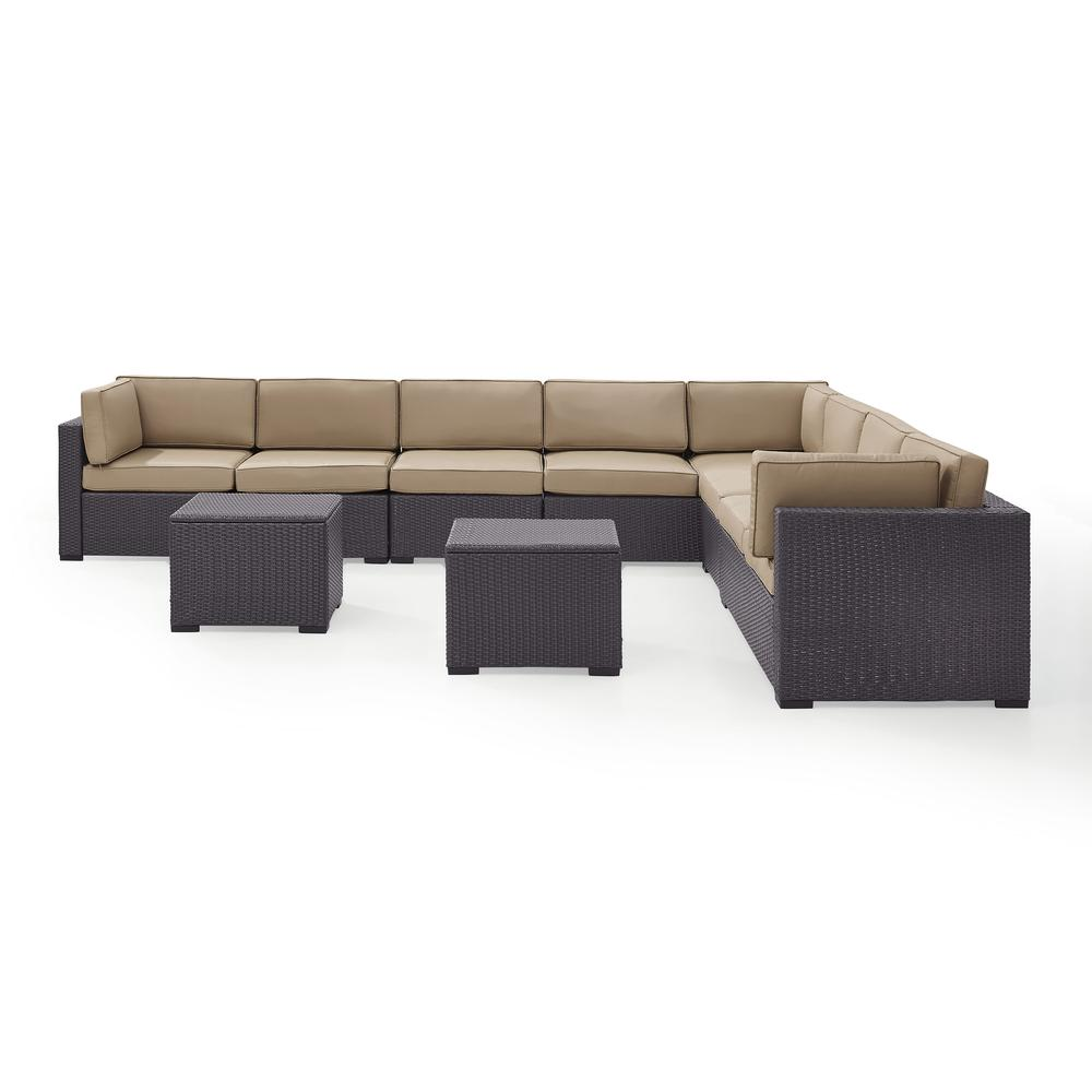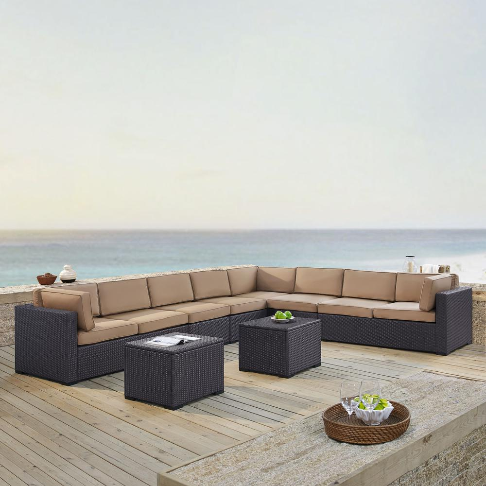 Biscayne 7Pc Outdoor Wicker Sectional Set Mocha/Brown - 3 Loveseats, 2 Armless Chair, & 2 Coffee Tables