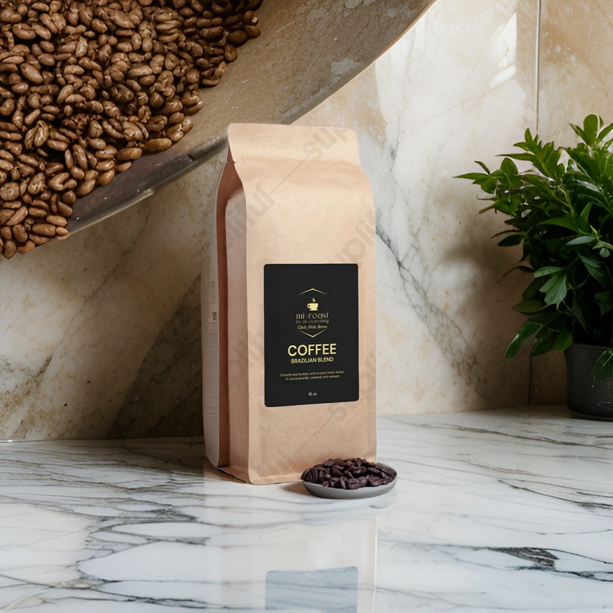 Introducing our exquisite Single-Origin Brazilian Blend 16oz Coffee – a sensory delight that is bound to become your customers' cherished coffee experience. Meticulously crafted through expert roasting techniques, these 100% Arabica coffee beans boast a rich and nuanced flavor profile, setting them apart from the ordinary. Our master roasters employ the sophisticated "split-roasting" method, an intricate process that enhances the coffee's complexity.