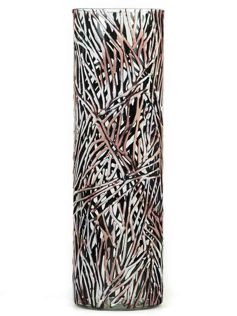 Brown branches decorated vase | Glass vase for flowers | Cylinder Vase | Interior Design | Home Decor | Large Floor Vase 16 inch