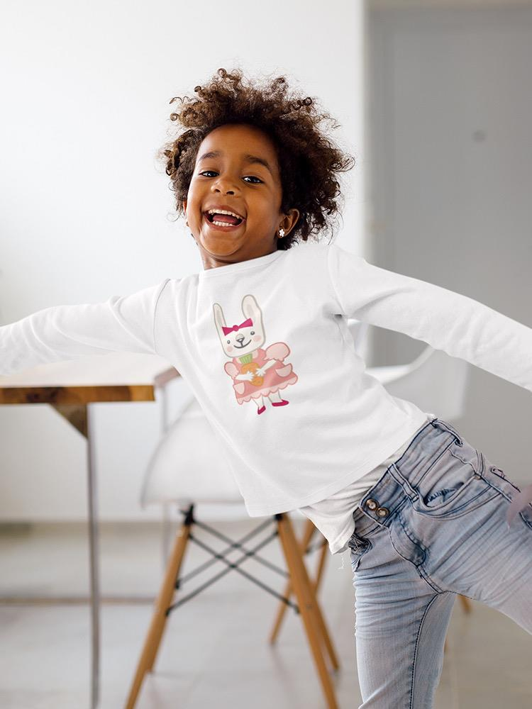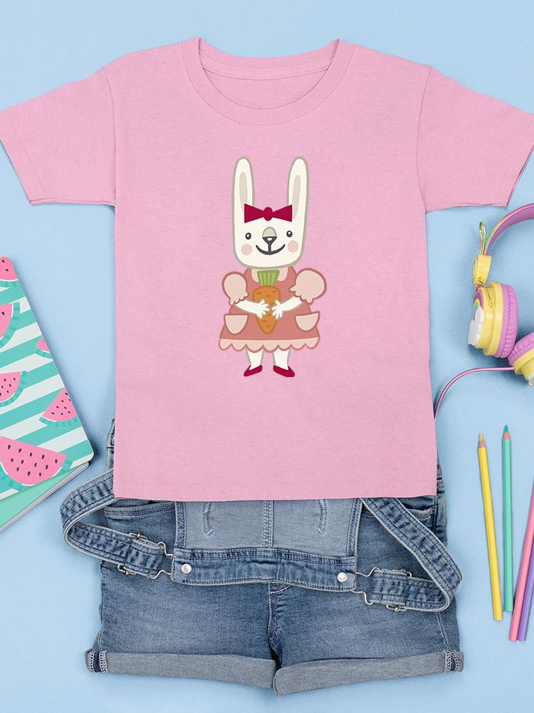 A Bunny Wearing A Dress Holding A Carrot Toddler's ( Long Sleeve )Youth's ( T-shirt ).