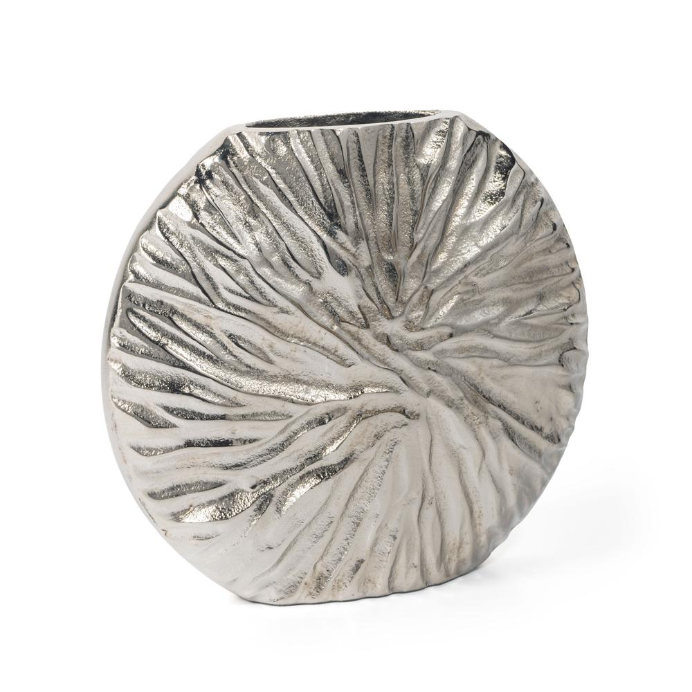 This solid cast aluminum, round metal vase is all about texture and style. The organic look of the textured surface creates dimension and intrigue. Beautiful on it's own or pair it with it's coordinating counterparts for an elevated approach to your decor. Each vase sold separately