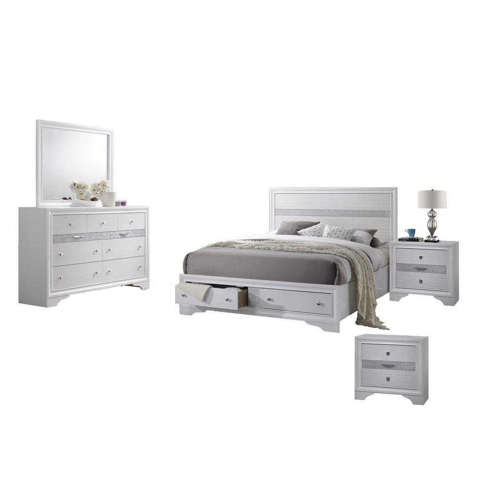 Color: White Glimering Panel 2 Footboard Drawers Platform Bed