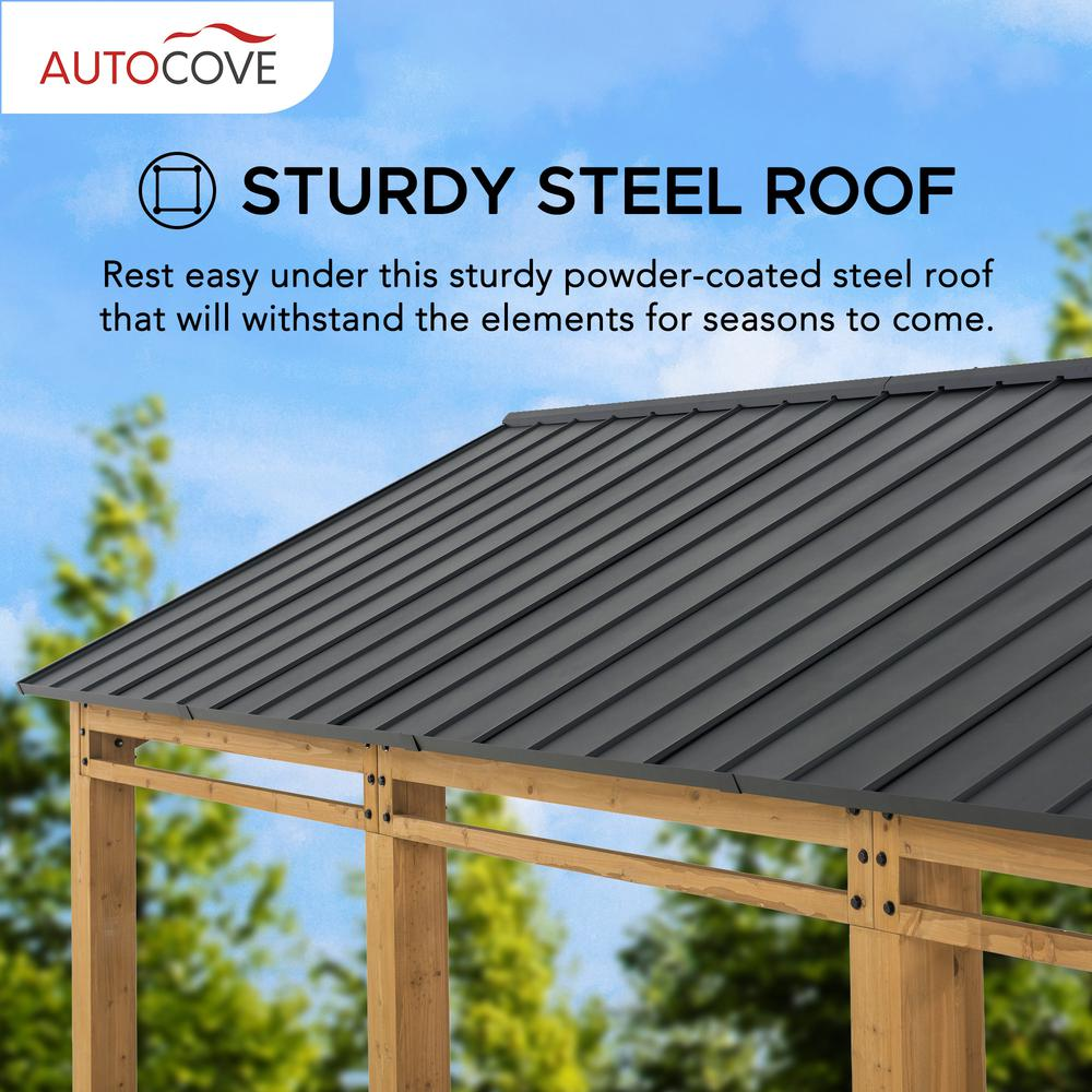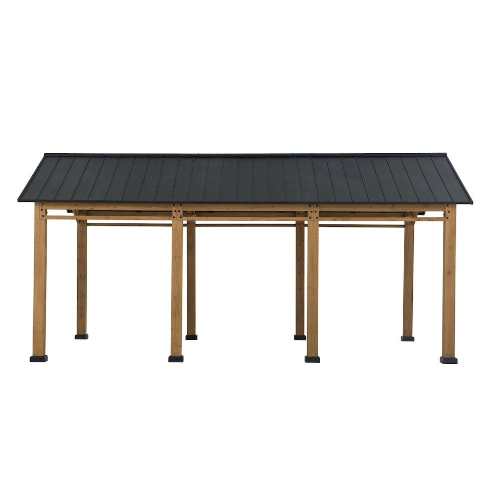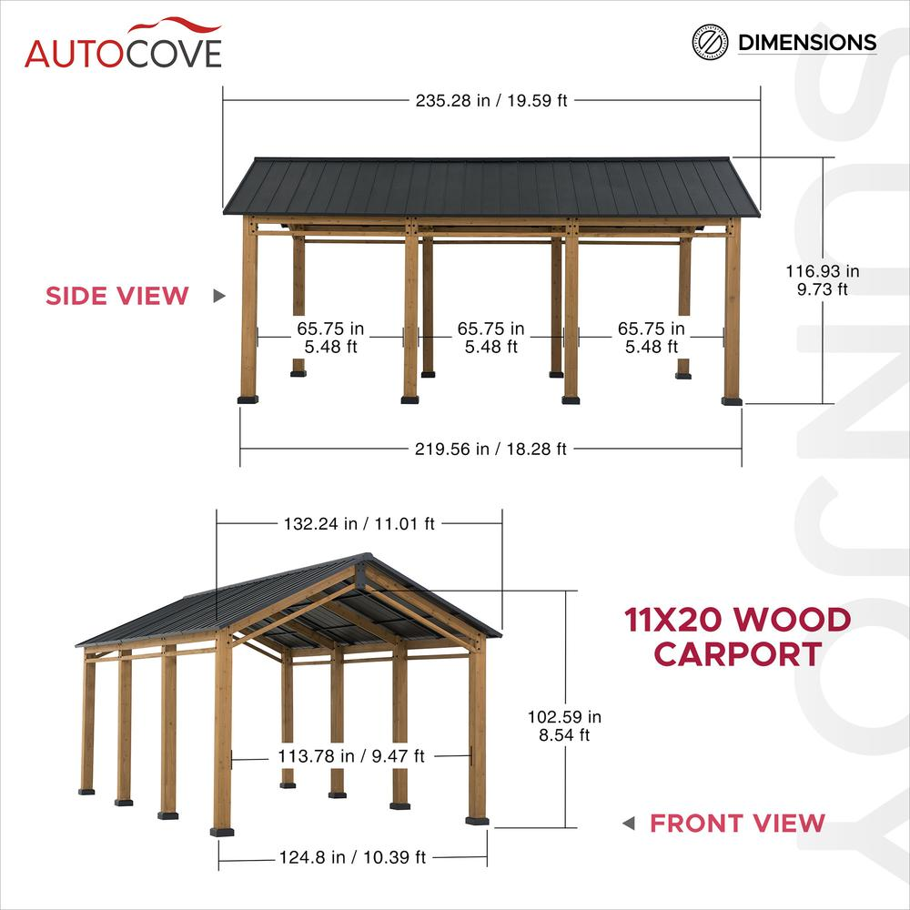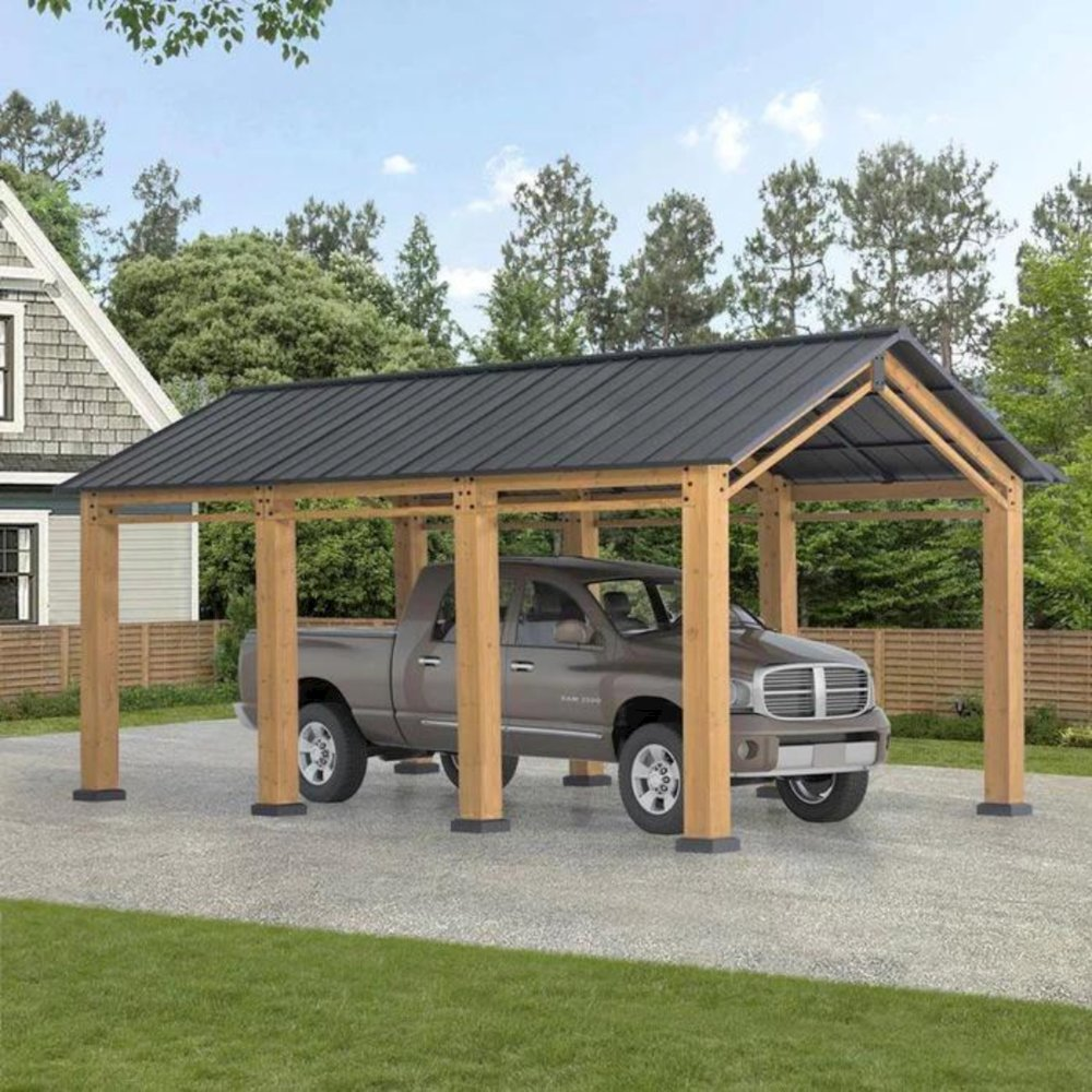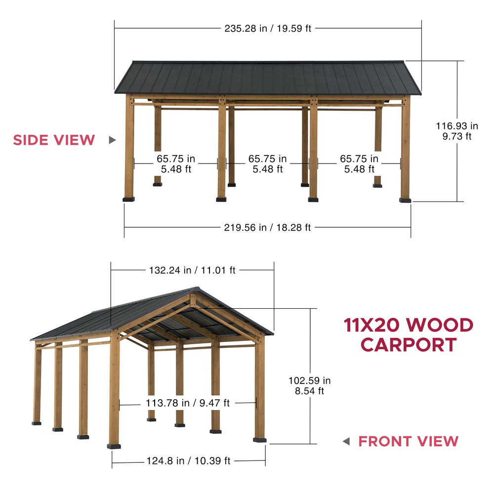 Durable & Stability Structure: This wood carport is made of a durable and sturdy steel roof that provides shade from the sun or keeps the rain out, while the premium cedar wood frame and components create a contemporary aesthetic Stylish Design: This 11x20 ft carport features a gable roof for a stylish design and is a great addition to the exterior of almost any home or building structure. It is an ideal choice whether as a carport or sun shade gazebo for your outdoor patio Versatile & Customizable: A movable ceiling hook is provided for this cedar wood carport for suspending lighting (not included) to illuminate your backyard evening gatherings Multiple Scenery