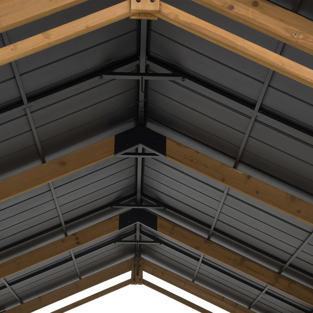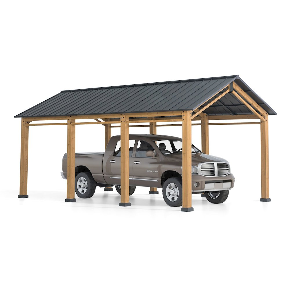 Come sun, rain, or snow, you and your car will be protected beneath this structure Enjoy the results of a finely crafted outdoor structure without most of the cutting, measuring, and re-cutting that comes with a typical start-from-scratch project. This carport comes with the parts already cut and drilled to precision Built-in high-quality and sturdy ceiling hook included for easily suspending a favorite chandelier or other décor element to shed light on your vehicles, or create the perfect illuminated gathering spot for family and friends.