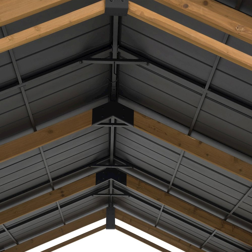 Protect your vehicles, boat, trailers, etc. from damaging sun rays, hail, rain, or snow with this 11x20 ft. wood carport. Made from a premium cedar wood frame with a powder-coated steel gable rooftop this structure will last the test of time and require very little maintenance. Enjoy a refuge from the elements and use it as a gazebo for entertaining as an alternative to a garage. The design is a great complement to almost any home architecture.