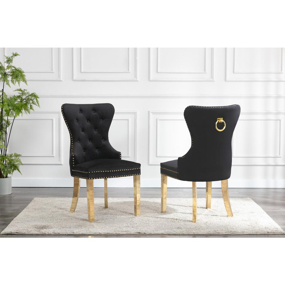 Table Color: Gold Chair Color | Black Chair Material | Velvet Stainless Steel Table and Chairs Assembling Tools Included