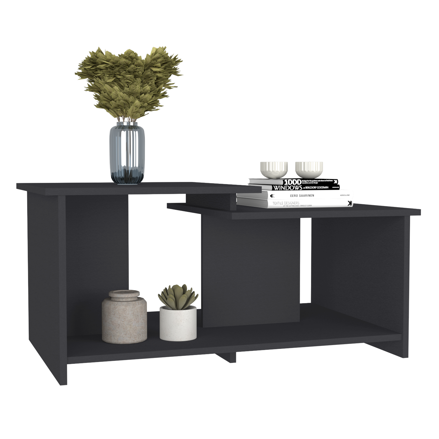 The Rochester Coffee Table provides a contrast factor to your living room with amazing modern styling. It's a spacious area to display your books, picture frames, or tall décor. Its design is the perfect option to give a touch of style and elegance. Modern and elegant design, high-end two levels top surface, all around the open shelf to display all types of decor. Designed with Black Wengue manufactured wood.