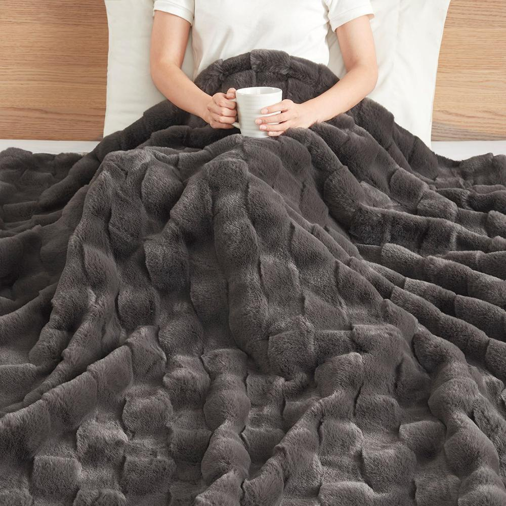 Faux fur face with basketweave texture provides warmth and luxury Crystal velvet reverse adds comfort and style Available in soft hues that blend easily with your existing decor Measures 50" x 60" Machine washable for easy care Minor shedding is expected with faux fur material and should subside after 3-4 washes Oeko-Tex Certified, includes no harmful substances or chemicals
