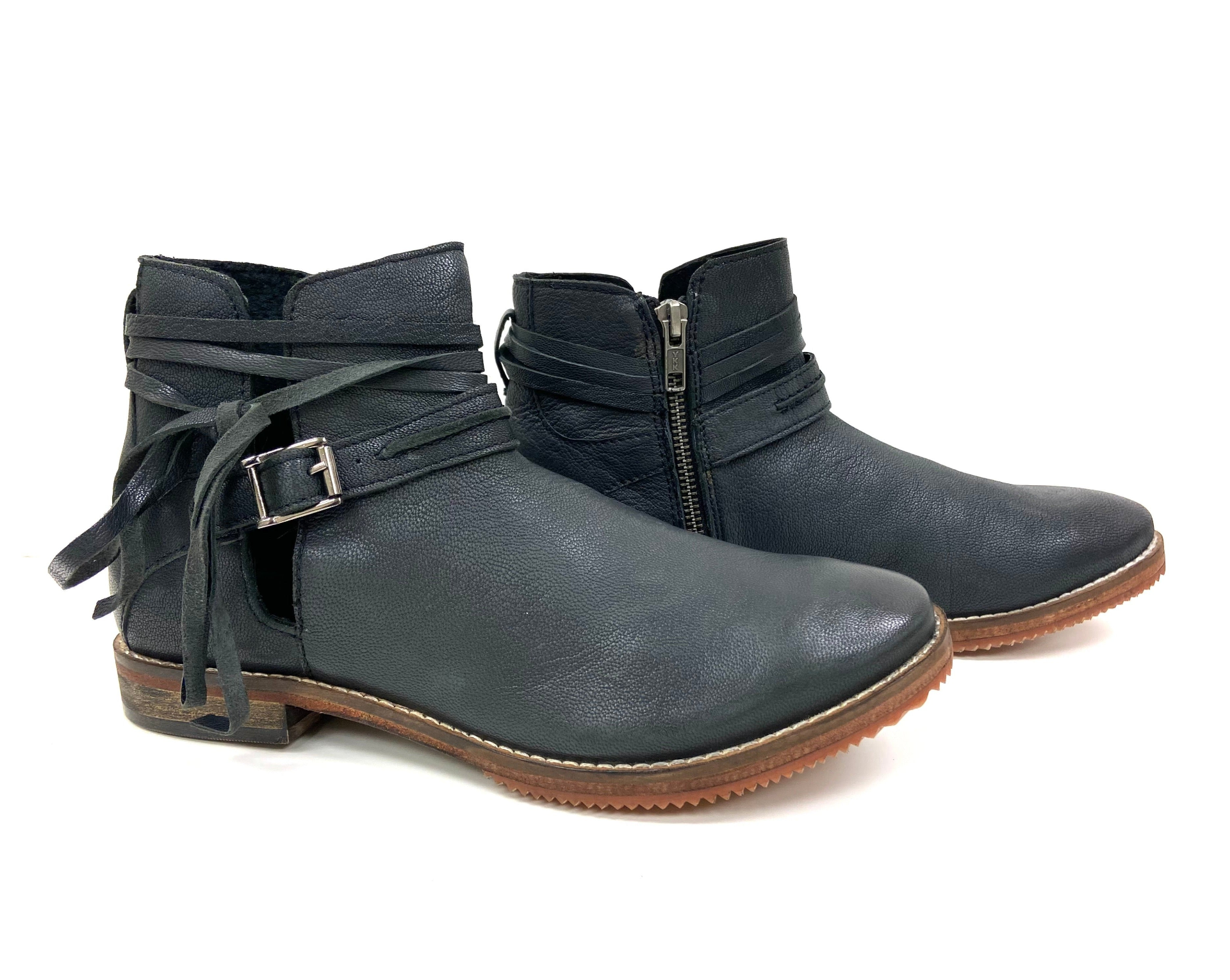 Break into timeless comfort wearing this low block heel ankle booties designed with a washed-vintage color finish, side zippers, and soft leather laces that wrap the ankle with charming ribbon design.