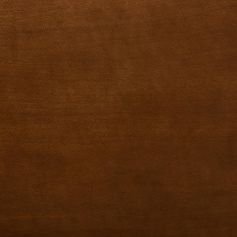 Modern and contemporary dining set includes one (1) table and six (6) chairs Constructed from oak wood and MDF wood Walnut brown finish Upholstered in polyester fabric and padded with foam Cut-out back design Assembly required