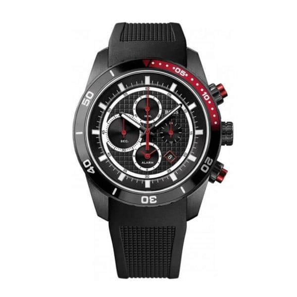 Hugo Boss Boss Black 1512661 Men's Wrist Watch - A fusion of elegance and precision. This German-made timepiece boasts a quartz chronograph mechanism with stopwatch functionality, ensuring accurate timekeeping for the modern man. The watch features luminescent hands for easy readability, an alarm clock for added functionality, and a durable silicone strap for comfort. The 46mm stainless steel case with IP coating not only enhances its visual appeal but also ensures longevity. With mineral glass, water resistance up to WR 100, and meticulous craftsmanship, this Hugo Boss watch is a stylish and reliable companion for every occasion.