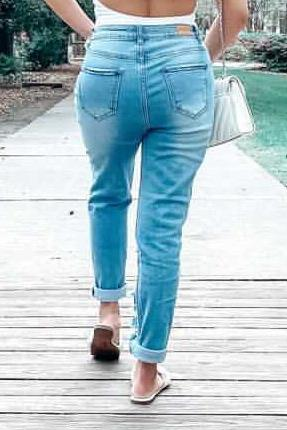 Distressed Straight Leg Jeans (Woven)