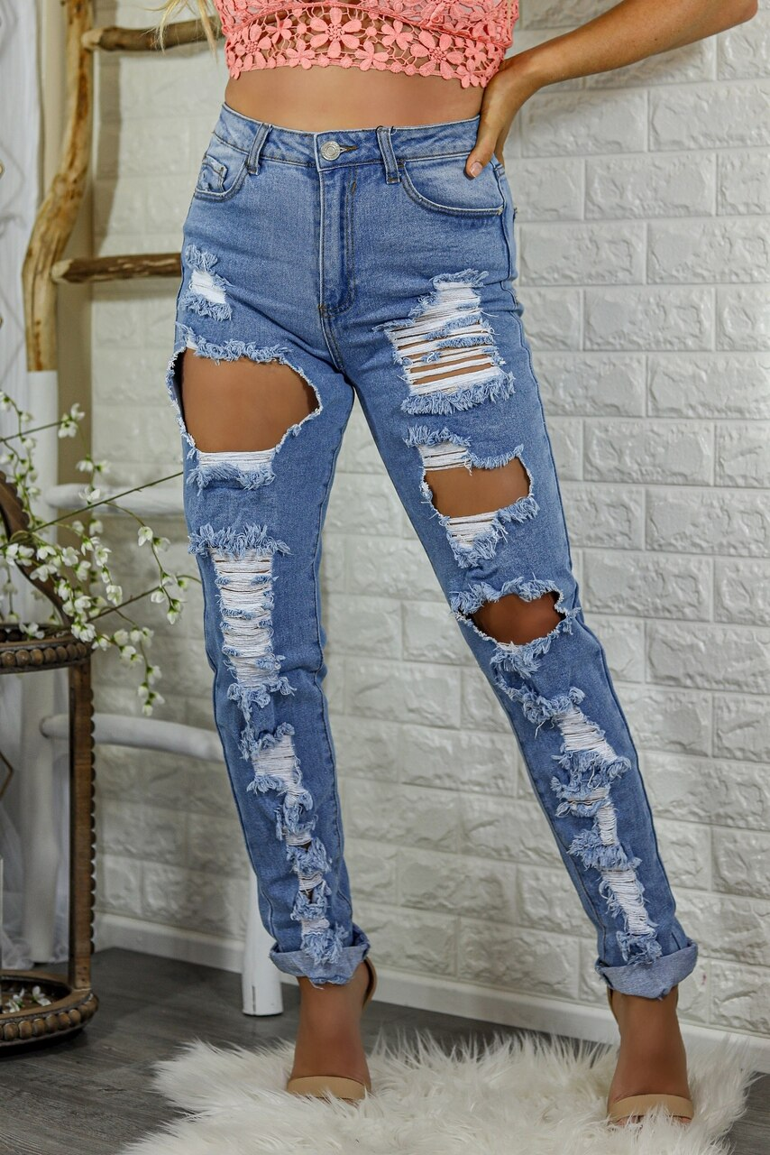 Jemma Straight Leg Ripped Mom Jeans