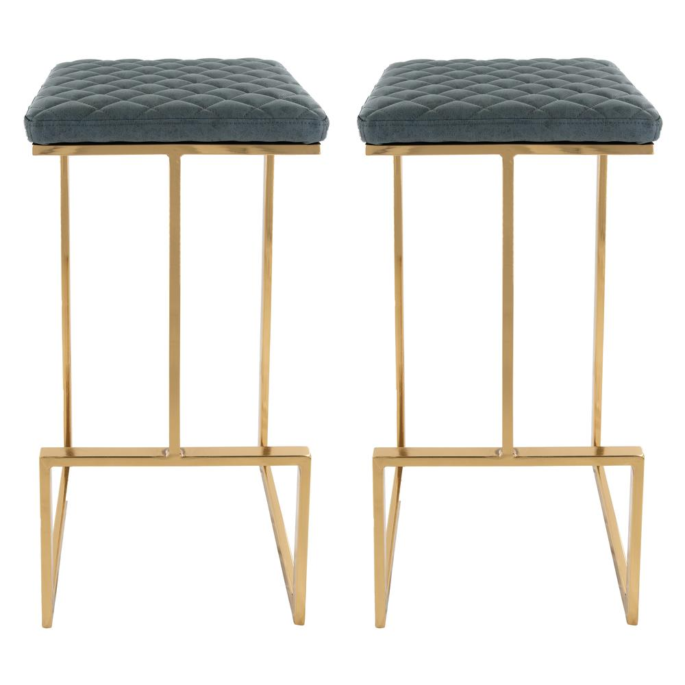 LeisureMod Quincy Leather Bar Stools With Gold Metal Frame Set of 2 Peacock Blue