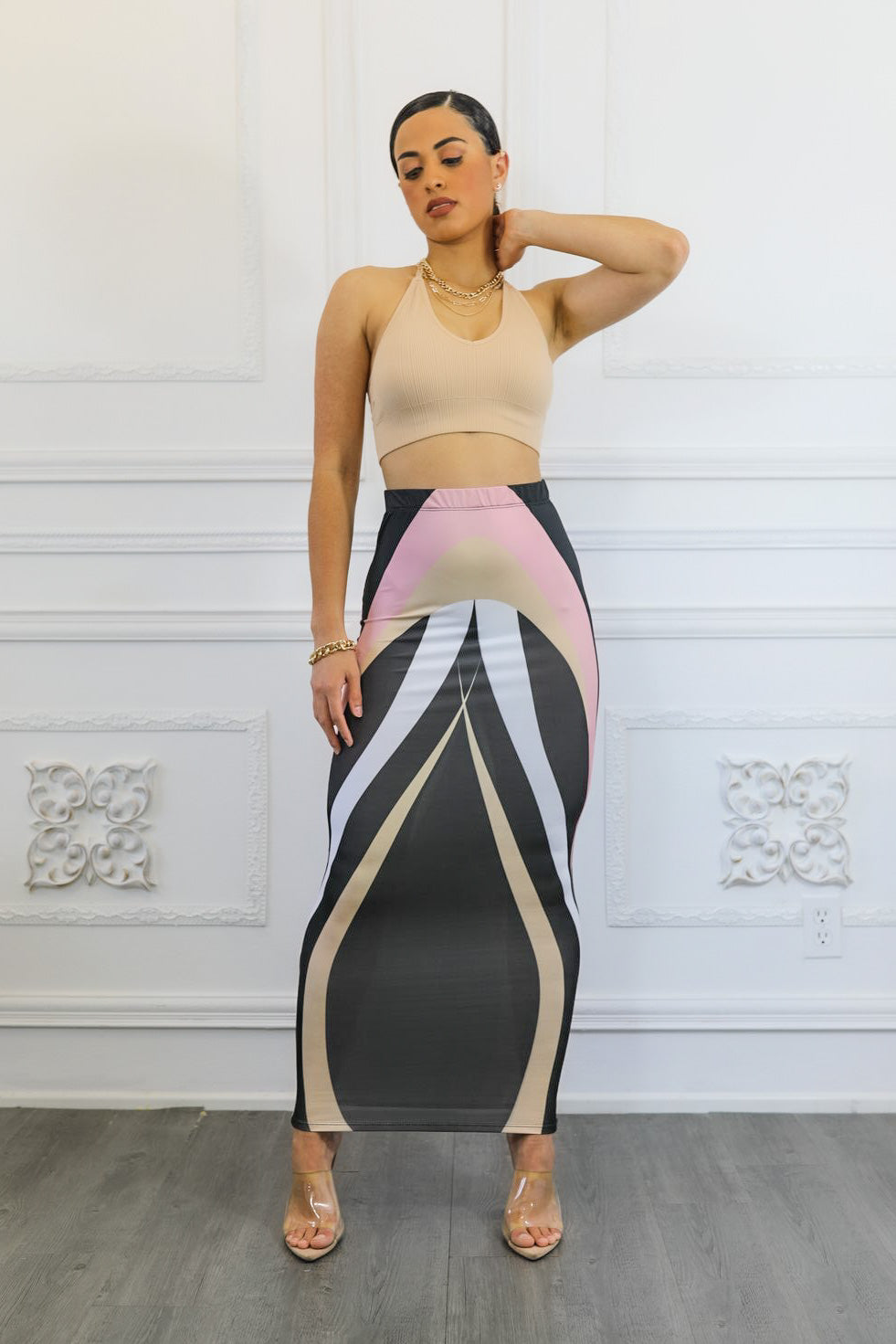 Level Up Geometric Print Maxi Skirt