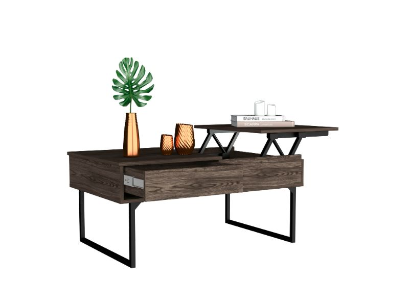 Vezu Lift Top Coffee Table mobility and style work together, this modern coffee table will be the protagonist when you receive your guests to enjoy a pleasant time in your living room. It features this lift-top coffee table with a hidden storage feature that provides extra space inside for all your items; this coffee table measures 39.9" wide X 24.1" deep, ideal for your decorative items, and the metal legs of the coffee table provide greater support and stability. Designed with elegant Dark Walnut manufactured wood finish.
