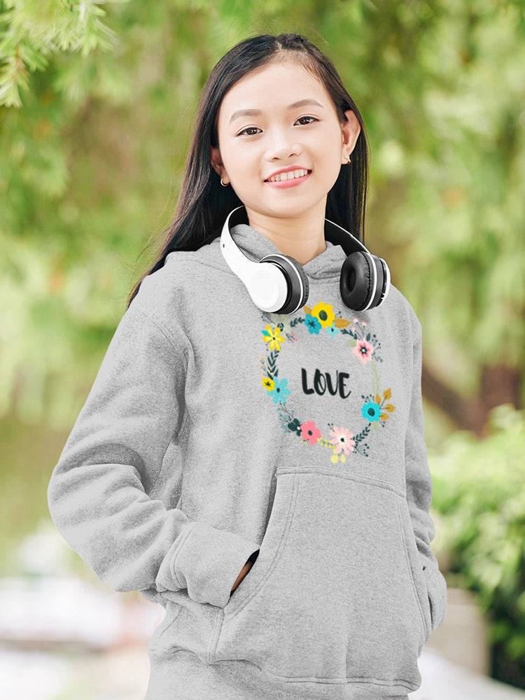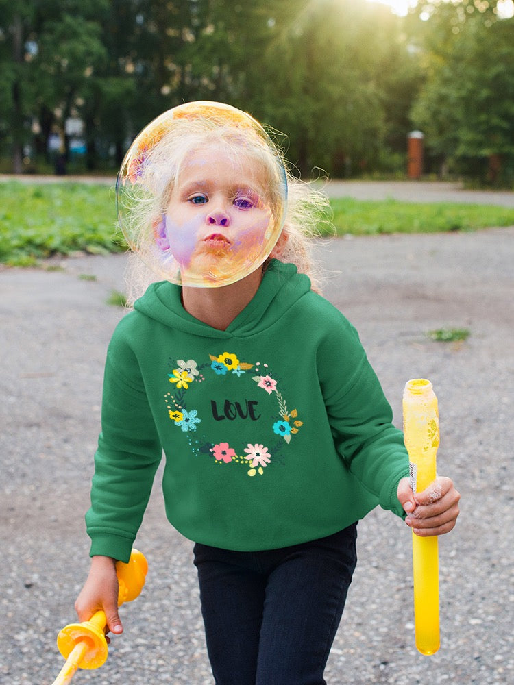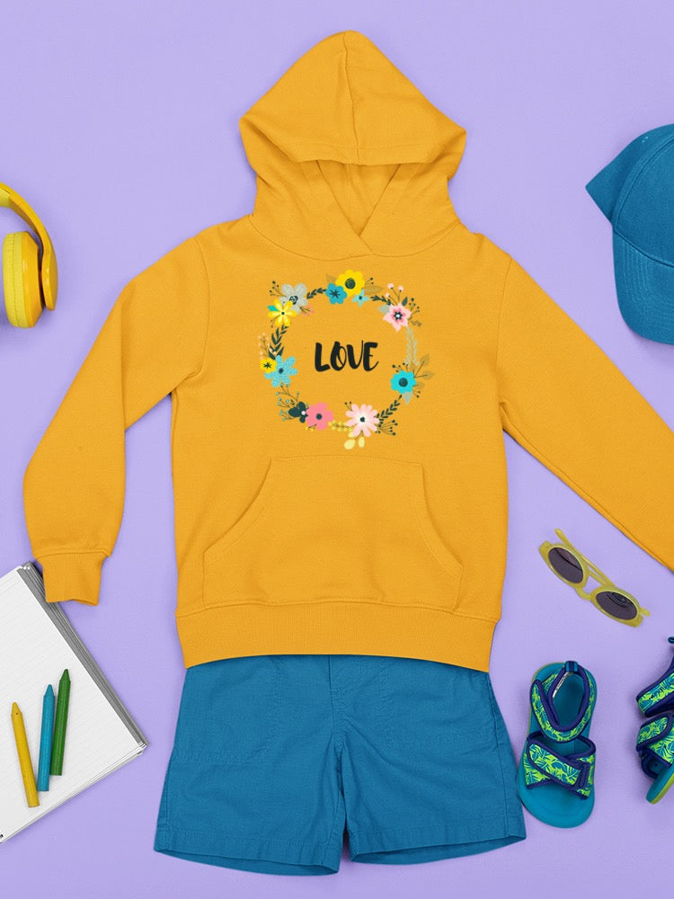 Love Text In A Flower Wreath Toddler's ( Hoodie )Youth's ( Hoodie ). Design by bosotochka.