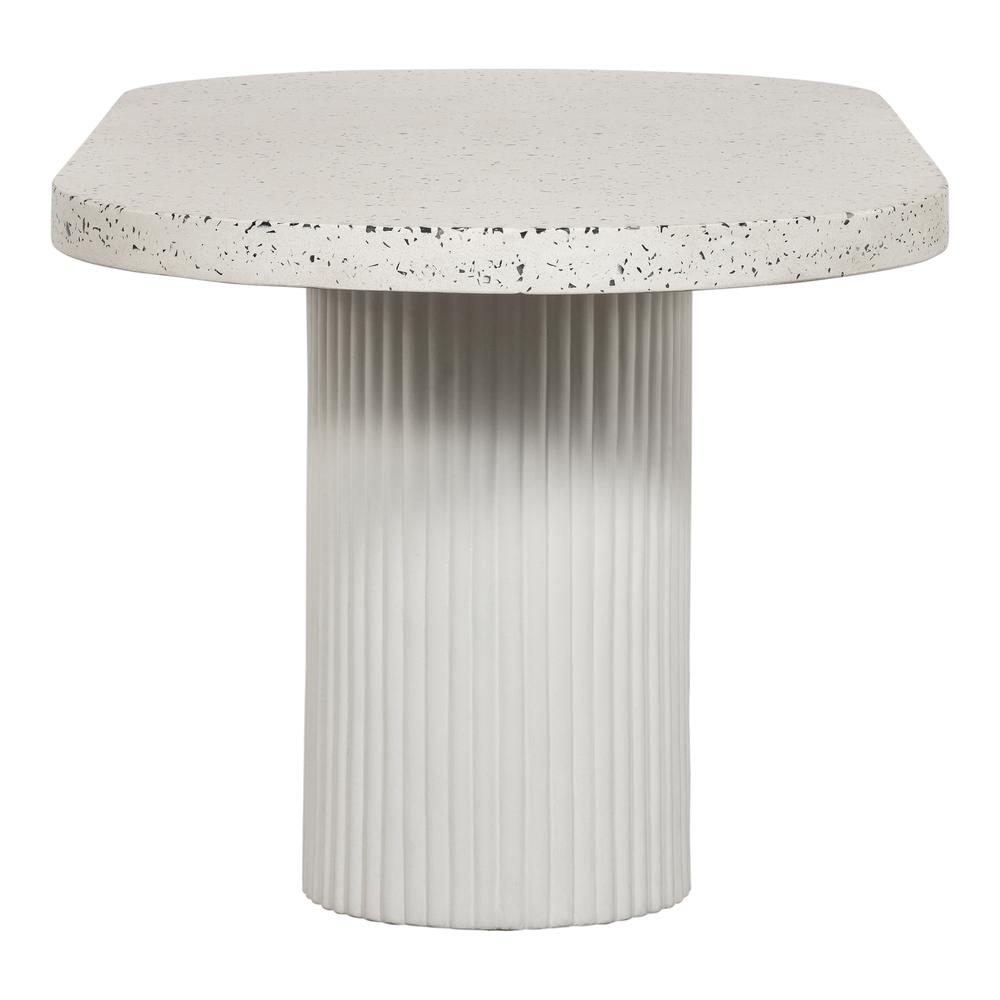 Enjoy your next gathering of cheese and wine on the Lyon outdoor dining table. Beautifully constructed, the solid terrazzo table-top features a delightful speckle pattern for a contemporary style. With seating space for 6, the Lyon outdoor dining table meets all of your needs, while looking amazing.Seating Capacity: 6Terrazzo Table-TopPure White Concrete BaseSpeckle PatternWipe concrete down regularly with water, followed by a household spray of one part bleach and two parts water. Leave the spray on for 5 minutes and then wipe down with water again. If a spill occurs, immediately clean it up using a mild soap and water. For more aggressive spills, use a household spray of one part bleach and two parts water on the entire surface to be cleaned. We do not recommend using traditional heavy acid cleaners which are designed for commercial use and are too corrosive for concrete furniture.Made in Vietnam